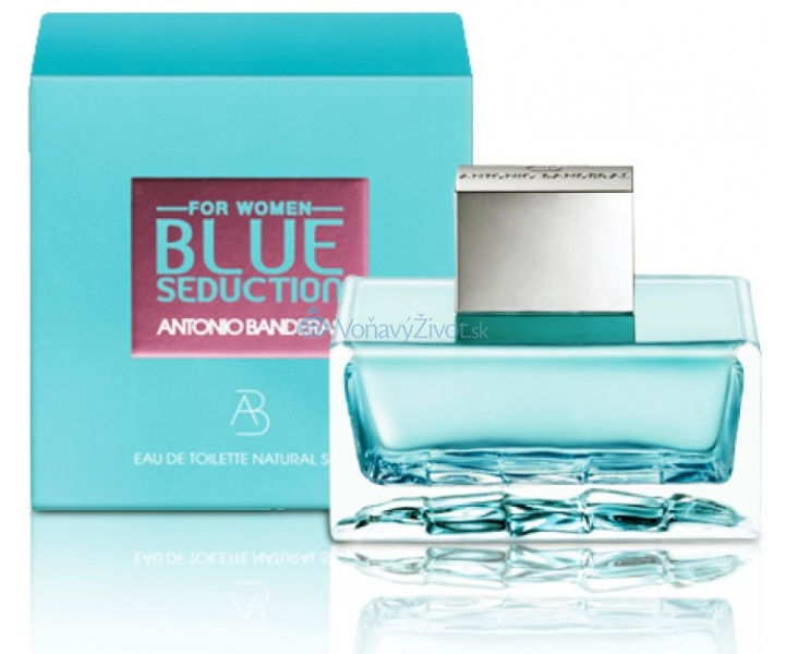 **Antonio Banderas Blue Seduction** má originální flakon, připomínající mozaiku dlaždic na dně bazénu. Tyrkysová barva vůně okamžitě navozuje pocit smyslné svěžesti. _Vůně Antonio Banderas Blue Seduction_ se otevírá zelenými květinovými nótami fialkových lístků, energickými tóny vodního melounu a šťavnaté hrušky. Srdce vás uchvátí květinovou svěžestí gardénie, pivoňky a ovocnou rozmarností malin. Podmanivý základ si vás získá tajemnou vůní přírodní tropické pryskyřice a neodolatelnou svůdností pižma a pačuli.
