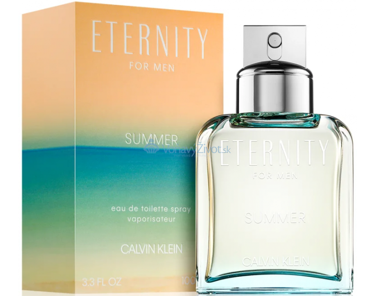 Pánská toaletní voda Calvin Klein Eternity for Men Summer 2019 - moderní kombinace kořeněných tónů prosycená slaným a dřevitým prvkem podtrhuje vřelou mužskou smyslnost. Řízný slaný akord vůně připomíná oceánský vzduch a dodává srdci kompozice svěží živoucí ráz, zatímco jemný motiv cedrového dřeva v základu zachycuje energičnost letního období.