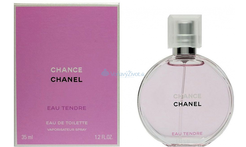 *Květinově ovocná vůně* dámské řady **Chanel Chance Eau Tendre** Vás svými jemnými tóny zanese do světa *štěstí a fantazie*. Prožijete setkání s životní šancí. V této unikátní *květinově ovocné kompozici* se prolínají zelené a ovocné akordy grapefruitu s jemností jasmínu a hebkostí pižma. *Něžná a delikátní vůně* **Chance Eau Tendre** má poetický nádech. Inspirací této vůni byla nepředvídatelnost a prchavost příležitosti. Přichází a jde, nikdy nezůstává stát ... a máte jen pár vteřin, než se *chopíte své šance*. Je nepředvídatelná a objevuje se, když to nejméně očekáváte, ale pokud se rozhodnete jí chytit, je vše možné. "Přišla šance, já jsem se jí chopila." *Mademoiselle Chanel* věděla, že její skutečná šance je její vlastní tvorba, stav mysli, způsob bytí. Chopte se také vy své šance!! Luxusní vůně **Chanel Chance Eau Tendre** vás bude provázet. Toaletní vodu **Chanel Chance Eau Tendre** aplikujte jednoduše na pokožku nebo oblečení. Chcete-li obnovit tóny vůně během dne, je tu toaletní voda v praktickém balení do kabelky *„Twist and Spray“,* které můžete vzít s sebou kamkoli. Dopřejte si kompletní vonný rituál se *sprchovou a tělovou kosmetikou* z této řady a užívejte si svoji oblíbenou luxusní vůni po celý den.