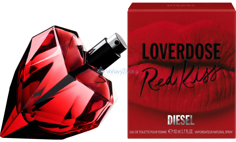 **Dámský parfém Diesel Loverdose Red Kiss** v sobě ukrývá nespoutanou vášeň, touhu a očekávání. Originální kompozice propojuje svěží ovocné tóny, které jsou doprovázeny mixem lískových oříšků, kakaových bobů a jemných pomerančových květů. Tato vášnivá směs probudí všechny Vaše smysly. Ukažte své pravé já a buďte sama sebou. S vůní Diesel Loverdose Red Kiss se budete cítit sebejistě, svůdně a velmi sexy. Dámský parfém _Loverdose Red Kiss_ byl uveden na trh v roce 2015.