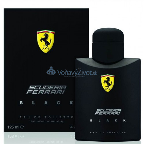 Pánská toaletní voda Ferrari Scuderia Black EDT 75ml. První akord Ferrari Scuderia Black uvolňuje vzrušující sílu: harmonii citrusových tónů, která se mísí se svěžími ovocnými doteky. Srdce vůně Ferrari Scuderia Black kolem sebe šíří hluboké mystérium: hřejivé koření, zahalené vzácnými květinovými tóny. Základní akord této vůně Ferrari Scuderia Black vám odhalí čirou, mužnou smyslnost: elegantní dřevité tóny, dřevo amyrisu změkčené vanilkou.
