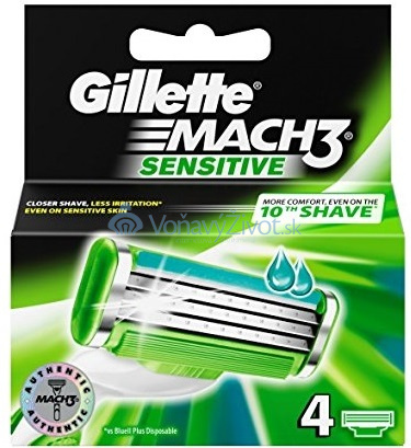 Náhradní hlavice **Gillette Mach 3 Sensitive**. Tříbřitvá hlavice Gillette Mach 3 Sensitive poskytuje dokonalé a hladké holení. Zvlhčující proužek hydratuje pokožku a zabraňuje podráždění.