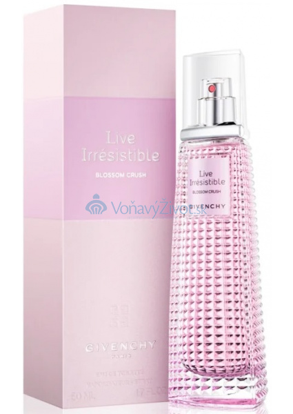 **Givenchy Live Irrésistible Blossom Crush** je inspirovaná hravou letní náladou a zábavou, která pokračuje až do rána. Delikátní dámská vůně je určena pro ženu, která se nebrání vrátit se do dětských let. Umí být nespoutaná a divoká. Její živelnost nakazí každého, komu vstoupí do cesty. Dokáže klamat tělem, její nevinná tvář v sobě skrývá nevázanou duši s nevysychající studnicí nečekaných nápadů. Úvodní hořké citrusové aroma se náhle promění v rozkvetlou zahradu plnou pivoněk a růží, které doprovází ovocné tóny jalbka, maliny a černého rybízu. Lahodný sladký základ je tvořen vanilkou, kakaem, pižmem, cashmeranem a ambrové dřevo. Staňte se nepřehlédnutelnou s toaletní vodou Givenchy Live Irrésistible Blossom Crush.
