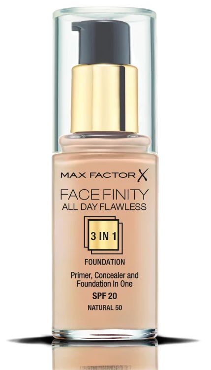Max Factor Face Finity 3in1 Foundation SPF20. Max Factor Face Finity 3in1 Foundation SPF20. Kosmetika Max Factor Max Factor Face Finity 3in1 Foundation SPF20 Dlouhotrvající makeup. Působí přirozeně po celý den, kryje drobné nedokonalosti a matuje pleť. Použití: Aplikujte prsty, štětcem nebo houbičkou. Poznámka: Vyobrazený odstín může být spíše orientační, záleží na nastavení barev Vašeho monitoru.
