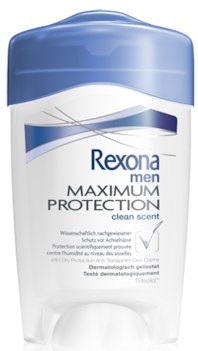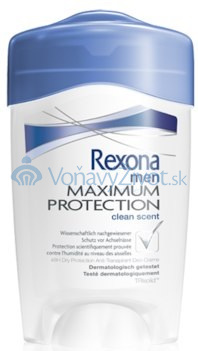 Antiperspirant **Rexona Maximum Protection Clean Scent Anti-Perspirant**. Antiperspirační krém Rexona Maximum Protection Clean Scent Anti-Perspirant poskytuje dlouhotrvající ochranu proti pocení a zápachu. Rexona Women Maximum Protection je 48hodinový antiperspirant s inovativní technologií TRIsolidTM, která reaguje na tělo a uvolňuje příjemnou vůní během celého dne. **Použití**: Aplikujte na suchou pokožku. Pro dosažení optimálního účinku aplikujte večer před spaním, protože Rexona Maximum Protection se nejlépe aktivuje při klidové teplotě Vašeho těla. Neaplikujte na podrážděnou pokožku.