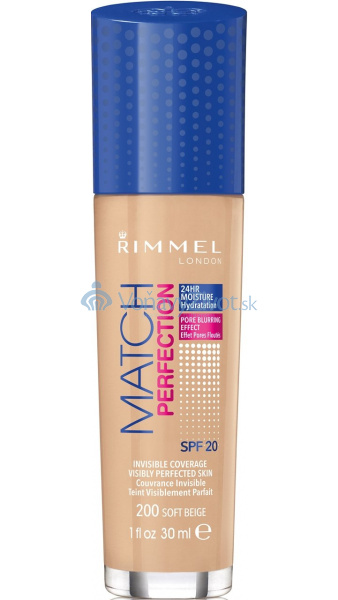 Make-up **Rimmel London Match Perfection Foundation SPF20**. Make-up Rimmel London Match Perfection Foundation SPF20 perfektně kryje nedokonalosti. Jemná textura snadno nanáší a ihned přilne k pleti. Pokožku hloubkově hydratuje a vyživuje. Zanechává pleť jemnou, svěží a bezchybnou. Ochranný faktor SPF20 chrání pleť před slunečním zářením a škodlivými vnějšími vlivy. **Poznámka**: _Vyobrazený odstín může být spíše orientační, záleží na nastavení barev Vašeho monitoru._