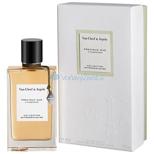 **Precious Oud** je dámská vůně z kolekce Collection Extraordinaire od značky Van Cleef & Arpels. Unikátní složení nabízí vůni vzácného agarového dřeva, který dodává parfému dotek luxusu a krásy. Vůni doprovází nádech koření a jemných květin. Dopřejte si výjimečné tóny s vůní Van Cleef & Arpels _Collection Extraordinaire Precious Oud_.