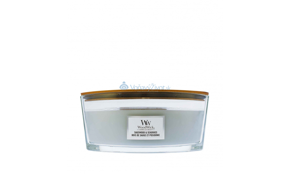Vonná svíčka WoodWick Ellipse s jedinečným dřevěným knotem Hearthwick® Flame přináší zážitek dokonalého pohodlí jako u hořícího krbu. Voskové jezírko se vytvoří neuvěřitelně rychle. Jemný zvuk praskání a dlouhý tančící plamen vytváří neopakovatelnou atmosféru. Všechny svíčky WoodWick jsou vyrobeny ze směsi prémiového parafínu a sójového vosku s vysoce koncentrovanými vůněmi a typickým dřevěným víčkem. Otevřený tvar svíčky zvyšuje plochu odpařování vonných esencí z voskového jezírka a zajišťuje rovnoměrný vonný zážitek. Patentovaný tvar knotu Hearthwick® Flame vytváří uklidňující zvuk praskajícího ohně. Sagewood & Seagrass (Šalvějové dřevo a mořská tráva) Svěží a sofistikovaná kombinace šťavnatého citrusu, mořských minerálů a bílé šalvěje. Charakter vůně: Svěží a čisté Doba hoření: 30 - 40 hodin Hmotnost netto: 453,6 g Šířka: 19,1 cm Hloubka: 12,1 cm Výška: 9,2 cm